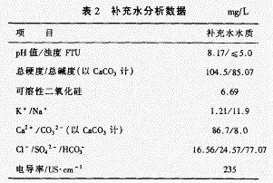 (1)試驗條件:滿足80±1℃要求的多孔恒溫水浴鍋;1000mL帶刻度燒杯;配制水水質:用蒸餾水配制,配水水質為Ca2(以CaCO3計)濃度280.10mg/L,HCO 一(以CaCO計)堿度273.75mg/L;濃縮倍數:N:1.5。