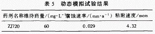 試驗目的是在有傳熱面條件下,全面考察全有機高效緩蝕阻垢劑ZJ一720的緩蝕阻垢性能。試驗結果見表5。