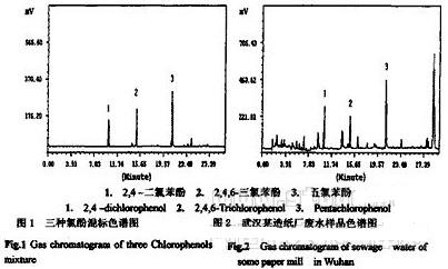 隨著苯酚上的取代氯的增加,方法的最低檢出限逐步提升,2,4-DCP為0.12 ug.L-1,2,4,6-TCP為0.02ug·Lt-1,PCP為0.00lug·L-1。