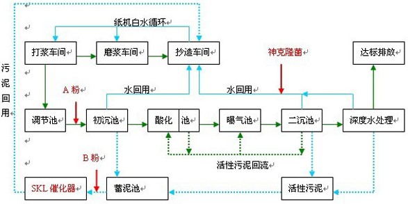 山東省聊城地區某公司是一家國有大型制漿造紙企業,年生產能力達70萬噸文化用紙和A級瓦楞原紙,名列全國造紙行業前十強。2008年5月,公司采用了“動態零排放造紙廢水處理創新技術”,將中段廢水污泥回用于20萬噸瓦楞原紙的生產中,取得了令人滿意的理想效果。