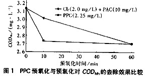 PPC與Cl2+PAC工藝的比(bi)較試驗結果見圖1。