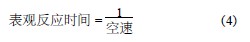 則由(3) 式可知,溫度增加,則K 增加,因而使得反應速率加快。因此隨著溫度的增加,催化反應速率增加。另一方面,在實驗條件下,表觀反應時間與空速的倒數成正比,即: