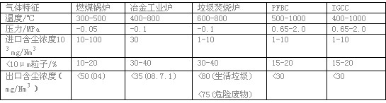 此類煙氣(qi)(qi)(qi)屬于主(zhu)動性煤煙氣(qi)(qi)(qi),在整體煤氣(qi)(qi)(qi)化聯(lian)合(he)循環(IGCC)和增(zeng)壓流化床燃燒聯(lian)合(he)循環(PFBC-CC)是兩種先進燃煤聯(lian)合(he)循環(ACFCC)的(de)(de)(de)基本方式中,都希望進入(ru)燃氣(qi)(qi)(qi)輪機(ji)(ji)前送入(ru)的(de)(de)(de)為(wei)(wei)干凈煙氣(qi)(qi)(qi),特別是對煙氣(qi)(qi)(qi)顆(ke)粒(li)物(wu)的(de)(de)(de)去除,因為(wei)(wei)顆(ke)粒(li)物(wu)的(de)(de)(de)進入(ru)將會(hui)腐蝕透平機(ji)(ji)械葉片上(shang)的(de)(de)(de)熱(re)涂層,最終導致對透平機(ji)(ji)械的(de)(de)(de)磨損。這一(yi)技(ji)術(shu)需要(yao)解決的(de)(de)(de)難點就(jiu)是要(yao)求進入(ru)燃氣(qi)(qi)(qi)透平高達900~1300℃的(de)(de)(de)氣(qi)(qi)(qi)體除塵,為(wei)(wei)了減(jian)少固體顆(ke)料(liao)對透平機(ji)(ji)葉片的(de)(de)(de)高速沖(chong)蝕與高速熔蝕,要(yao)求進入(ru)透平機(ji)(ji)中,0~4μm顆(ke)料(liao)含量(liang)小(xiao)于19.9mg/Nm³,顆(ke)料(liao)大于5μm的(de)(de)(de)小(xiao)于0.3mg/Nm³,即要(yao)求固體顆(ke)料(liao)含量(liang)小(xiao)于22.5mg/Nm³。