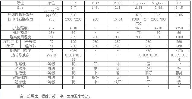 表3 歸納了高(gao)溫煙(yan)氣過(guo)濾纖(xian)維(wei)材料的主要物化性能對(dui)比(bi)。