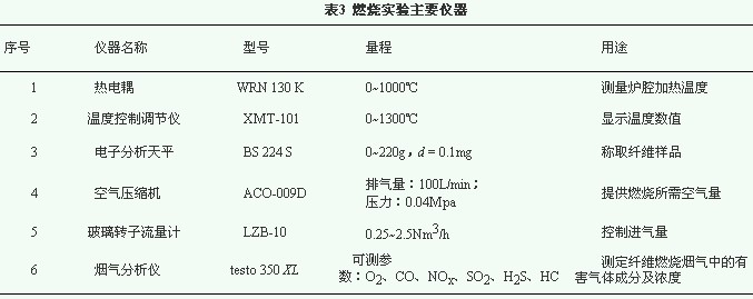 本試驗所采用的主要設備及儀器見表3所示。其中最主要的測試儀器是testo 350 XL煙氣分析儀。該儀器置于燃燒裝置的測試段測試口處,對燃燒產生的氣體成分及含量進行測試。