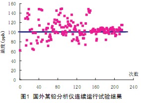 電(dian)(dian)(dian)(dian)(dian)化(hua)學(xue)溶(rong)出(chu)分(fen)(fen)析(xi)(xi)(xi)(xi)的(de)技術(shu)優勢是(shi)(shi)在(zai)合適的(de)工作電(dian)(dian)(dian)(dian)(dian)極(ji)、合適的(de)分(fen)(fen)析(xi)(xi)(xi)(xi)環境(jing)條件下,可以對(dui)水中(zhong)μg/L數量級的(de)重(zhong)(zhong)金(jin)屬進行精確的(de)定量分(fen)(fen)析(xi)(xi)(xi)(xi),并且能夠(gou)同(tong)時(shi)分(fen)(fen)析(xi)(xi)(xi)(xi)水中(zhong)的(de)多(duo)種(zhong)重(zhong)(zhong)金(jin)屬離子,分(fen)(fen)析(xi)(xi)(xi)(xi)過程(cheng)本身不(bu)會產(chan)生危(wei)(wei)害性(xing)大(da)(da)(da)的(de)副產(chan)物(wu)。但是(shi)(shi)電(dian)(dian)(dian)(dian)(dian)化(hua)學(xue)分(fen)(fen)析(xi)(xi)(xi)(xi)方法易受到(dao)水中(zhong)有機物(wu)等(deng)的(de)干擾,因(yin)此需要(yao)預處(chu)理,大(da)(da)(da)多(duo)數情況下分(fen)(fen)析(xi)(xi)(xi)(xi)的(de)是(shi)(shi)某(mou)種(zhong)金(jin)屬離子的(de)總(zong)(zong)量,如(ru)總(zong)(zong)鉛、總(zong)(zong)鎘(ge)等(deng)。另外(wai)(wai),如(ru)果(guo)電(dian)(dian)(dian)(dian)(dian)極(ji)使用的(de)是(shi)(shi)液態(tai)汞(gong)或者汞(gong)膜,分(fen)(fen)析(xi)(xi)(xi)(xi)過程(cheng)會引入(ru)汞(gong),對(dui)環境(jing)和分(fen)(fen)析(xi)(xi)(xi)(xi)操作維護人員存(cun)在(zai)較(jiao)大(da)(da)(da)的(de)危(wei)(wei)害,這也(ye)是(shi)(shi)電(dian)(dian)(dian)(dian)(dian)化(hua)學(xue)溶(rong)出(chu)分(fen)(fen)析(xi)(xi)(xi)(xi)技術(shu)沒有得(de)到(dao)普遍推廣的(de)主要(yao)原因(yin)。目(mu)前,一(yi)些(xie)公司推出(chu)的(de)無汞(gong)電(dian)(dian)(dian)(dian)(dian)化(hua)學(xue)溶(rong)出(chu)重(zhong)(zhong)金(jin)屬分(fen)(fen)析(xi)(xi)(xi)(xi)儀(yi),在(zai)技術(shu)上取(qu)得(de)了(le)較(jiao)大(da)(da)(da)的(de)突(tu)破,如(ru)HMA-2000系(xi)列產(chan)品(pin)采用對(dui)環境(jing)友好(hao)的(de)鉍(bi)膜電(dian)(dian)(dian)(dian)(dian)極(ji),在(zai)國內屬于(yu)首例(li)。在(zai)儀(yi)器(qi)性(xing)能上,HMA-2000 (Pb)鉛在(zai)線分(fen)(fen)析(xi)(xi)(xi)(xi)儀(yi)曾(ceng)與國外(wai)(wai)某(mou)品(pin)牌鉛分(fen)(fen)析(xi)(xi)(xi)(xi)儀(yi)(量程(cheng) 0~100μg/L)對(dui)同(tong)一(yi)水樣加標進行連續比對(dui)試驗,結果(guo)如(ru)圖(tu)1和圖(tu)2所示(shi)。