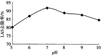 圖4 pH值對LAS去除率的影響 |
