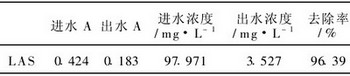 實驗用水:模擬廢水,LAS含量為100mg/L, 磷含量為20mg/L,N為4mg/L。