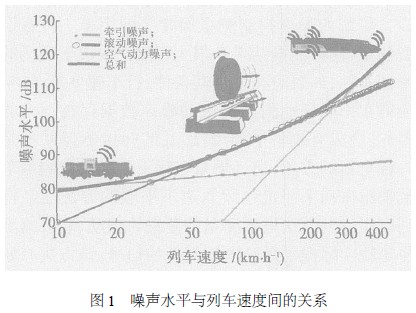 軌(gui)(gui)(gui)道交(jiao)通噪(zao)(zao)聲(sheng)(sheng)對(dui)環境的影響日益受到人們的普遍關(guan)注,特別(bie)是(shi)在(zai)(zai)當前(qian)高(gao)速(su)鐵路(lu)技術發展迅(xun)猛的情況下,隨著行(xing)車速(su)度(du)的提高(gao),噪(zao)(zao)聲(sheng)(sheng)水平迅(xun)速(su)提高(gao),如圖(tu)1 所(suo)示。國內外一(yi)些研(yan)究(jiu)資料表明(ming)[1-2]:在(zai)(zai)不同速(su)度(du)條件(jian)下,滾(gun)動(dong)噪(zao)(zao)聲(sheng)(sheng)是(shi)鐵路(lu)噪(zao)(zao)聲(sheng)(sheng)輻(fu)射的主(zhu)要(yao)來源,而鋼(gang)軌(gui)(gui)(gui)振動(dong)噪(zao)(zao)聲(sheng)(sheng)在(zai)(zai)輪軌(gui)(gui)(gui)滾(gun)動(dong)噪(zao)(zao)聲(sheng)(sheng)中(zhong)又居主(zhu)要(yao)地(di)位,車輪次(ci)之。由(you)于(yu)噪(zao)(zao)聲(sheng)(sheng)與(yu)振動(dong)在(zai)(zai)500~2000 Hz 頻率范圍內線性相關(guan),且鋼(gang)軌(gui)(gui)(gui)在(zai)(zai)此范圍內是(shi)主(zhu)要(yao)輻(fu)射體,因此,抑制(zhi)鋼(gang)軌(gui)(gui)(gui)振動(dong)、減(jian)小鋼(gang)軌(gui)(gui)(gui)的振動(dong)加速(su)度(du)和頻率,對(dui)降噪(zao)(zao)起著關(guan)鍵(jian)作用。在(zai)(zai)許多(duo)工業(ye)發達國家,經過多(duo)年的研(yan)究(jiu)積累(lei),已經形成較為(wei)完(wan)整的軌(gui)(gui)(gui)道交(jiao)通噪(zao)(zao)聲(sheng)(sheng)測試(shi)、評價、控制(zhi)及整治機制(zhi)。而我國學(xue)者雖也對(dui)此進行(xing)了一(yi)些研(yan)究(jiu),提出并采取了一(yi)些措施[3-8] ,輪軌(gui)(gui)(gui)噪(zao)(zao)聲(sheng)(sheng)有所(suo)降低(di),但隨著我國高(gao)速(su)客運專線的建設(she),由(you)于(yu)輪軌(gui)(gui)(gui)噪(zao)(zao)聲(sheng)(sheng)對(dui)車速(su)有較強(qiang)的依賴性,其聲(sheng)(sheng)級將愈(yu)來愈(yu)大,有待(dai)于(yu)進一(yi)步(bu)研(yan)究(jiu)。