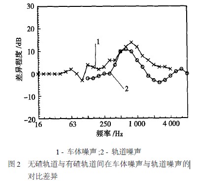 無(wu)碴(cha)(cha)軌(gui)道(dao)(dao)由于軌(gui)道(dao)(dao)聯接阻(zu)抗、振(zhen)(zhen)動(dong)衰減率的(de)降低(di)以(yi)及軌(gui)道(dao)(dao)噪(zao)聲吸(xi)收能力(li)的(de)降低(di),使得它(ta)比有碴(cha)(cha)軌(gui)道(dao)(dao)有更(geng)高的(de)噪(zao)聲輻射。利(li)用鋼(gang)軌(gui)振(zhen)(zhen)動(dong)與(yu)噪(zao)聲的(de)關系,計(ji)算由鋼(gang)軌(gui)產生的(de)1/3 倍頻(pin)(pin)程等效聲壓(ya)級曲線,如圖(tu)2 所示(shi),它(ta)表明無(wu)碴(cha)(cha)軌(gui)道(dao)(dao)在(zai)500~1500Hz頻(pin)(pin)率范圍內(nei)比有碴(cha)(cha)軌(gui)道(dao)(dao)、鋼(gang)軌(gui)振(zhen)(zhen)動(dong)水平更(geng)高,而沿鋼(gang)軌(gui)的(de)振(zhen)(zhen)動(dong)衰減十分低(di),而且(qie)輸入阻(zu)抗在(zai)相(xiang)關頻(pin)(pin)率范圍內(nei),無(wu)碴(cha)(cha)軌(gui)道(dao)(dao)比有碴(cha)(cha)軌(gui)道(dao)(dao)低(di)很多(duo)。