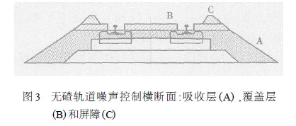為了使無碴軌道在噪聲抑制性能(neng)上基(ji)本與有碴軌道的相當,甚至(zhi)比其更好,主(zhu)要采取(qu)下(xia)面3 個(ge)措施,如(ru)圖3 所示: