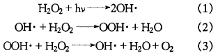 過(guo)(guo)(guo)氧(yang)(yang)(yang)(yang)化(hua)(hua)氫作為一(yi)種強的(de)氧(yang)(yang)(yang)(yang)化(hua)(hua)劑,可(ke)以將水(shui)中有(you)機(ji)的(de)或無機(ji)的(de)毒(du)性污染物(wu)氧(yang)(yang)(yang)(yang)化(hua)(hua)成(cheng)無毒(du)或較(jiao)易為微生物(wu)分解的(de)化(hua)(hua)合物(wu)。但一(yi)般(ban)來說,無機(ji)物(wu)對(dui)過(guo)(guo)(guo)氧(yang)(yang)(yang)(yang)化(hua)(hua)氫的(de)反(fan)應較(jiao)快,且因傳質的(de)限制,水(shui)中極微量的(de)有(you)機(ji)物(wu)難以被(bei)過(guo)(guo)(guo)氧(yang)(yang)(yang)(yang)化(hua)(hua)氫氧(yang)(yang)(yang)(yang)化(hua)(hua),對(dui)于高濃度難降解的(de)有(you)機(ji)污染物(wu),僅使(shi)用過(guo)(guo)(guo)氧(yang)(yang)(yang)(yang)化(hua)(hua)氨氧(yang)(yang)(yang)(yang)化(hua)(hua)效(xiao)果也不十分理想,而紫外光的(de)引入大大提高了過(guo)(guo)(guo)氧(yang)(yang)(yang)(yang)化(hua)(hua)氫的(de)處理效(xiao)果,紫外光分解過(guo)(guo)(guo)氧(yang)(yang)(yang)(yang)化(hua)(hua)氫的(de)機(ji)理如下[1]:
