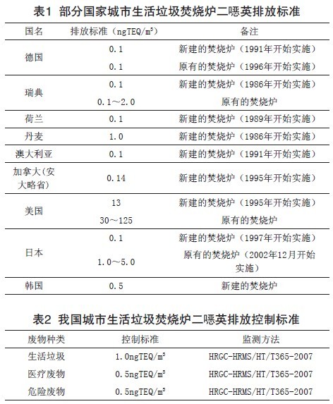 針對城市(shi)生(sheng)活(huo)垃(la)圾焚(fen)燒(shao)爐煙(yan)囪(cong)排氣中二惡(e)英(ying)的排放(fang),各國政府都制定了嚴(yan)格的排放(fang)標(biao)準。其中部分國家城市(shi)生(sheng)活(huo)垃(la)圾焚(fen)燒(shao)爐煙(yan)囪(cong)排氣中二惡(e)英(ying)的排放(fang)標(biao)準見表1;我國城市(shi)生(sheng)活(huo)垃(la)圾焚(fen)燒(shao)爐、醫(yi)療廢物焚(fen)燒(shao)爐和危險廢物焚(fen)燒(shao)爐二惡(e)英(ying)排放(fang)控制標(biao)準見表2。