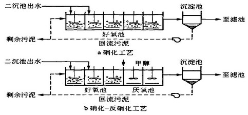 由于污水(shui)(shui)處(chu)理廠面積(ji)有(you)(you)限,沒(mei)有(you)(you)考慮擴建現有(you)(you)活性污泥單元,而采(cai)(cai)用(yong)能完成硝(xiao)(xiao)化(hua)(hua)和反硝(xiao)(xiao)化(hua)(hua)的(de)生物(wu)濾(lv)池系(xi)統。在(zai)進水(shui)(shui)CODc,為(wei)500 mg/L,TN為(wei)40mg/L,TP為(wei)7 mg/L的(de)情況(kuang)下(xia),采(cai)(cai)用(yong)新(xin)工(gong)藝后,出水(shui)(shui)中(zhong)CODc,為(wei)50 mg/L,TN為(wei)10 mg/L,TP為(wei)1mg/L。工(gong)藝要求反硝(xiao)(xiao)化(hua)(hua)段應盡可能多地(di)利用(yong)進水(shui)(shui)中(zhong)的(de)有(you)(you)機碳(tan),由于二沉池可承(cheng)擔的(de)負(fu)荷有(you)(you)限,硝(xiao)(xiao)化(hua)(hua)液回(hui)流(liu)比(bi)受到限制,工(gong)藝采(cai)(cai)用(yong)后置反硝(xiao)(xiao)化(hua)(hua)的(de)布置方式,并在(zai)反硝(xiao)(xiao)化(hua)(hua)濾(lv)池內投(tou)加甲醇作(zuo)碳(tan)源以徹底去除污水(shui)(shui)中(zhong)的(de)硝(xiao)(xiao)酸鹽。此外,系(xi)統除磷通過強化(hua)(hua)沉淀實現。