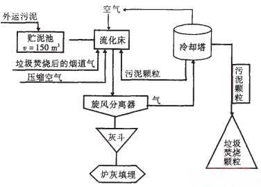 污泥外運至垃圾焚燒廠如圖5所示。其中:冷卻介質為空氣,且空氣壓力為101kPa;流量為900m3/h;污泥輸送壓力為1800kPa;濕度為25%TR。污泥處理能力為2500kg/h。通過該方式處置污泥,既利用了垃圾焚燒煙氣廢熱,又提高了垃圾的熱值。