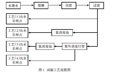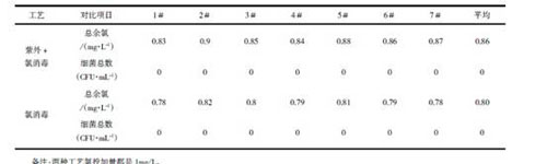 由于紫外線消毒工藝的消毒持續時間不長,所以中試基地采用與氯消毒工藝相結合,以保證