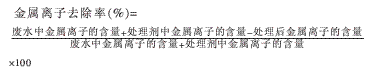 將4種處理劑分別加入25mL電鍍廢水中,靜置10min,再用1mol/L的 NaOH調節pH值至7.0~7.5,慢速振蕩15min,過濾,測定濾液中Cu2+、Zn2+、Ni2+的濃度。換算出處理劑對Cu2+、Zn2+、 Ni2+的去除率(%),計算公式如下: