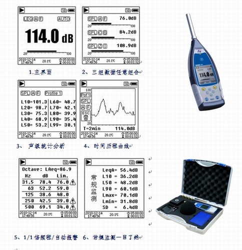 6.常規監測一目了然:聲環境質量常規監測界面完全符合《環境噪聲監測技術規范》要求,所有被測參數在同一屏上顯示,方面操作。