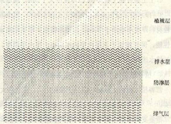 填埋場封場必須建立完整的封場覆蓋系統。封場覆蓋系統結構由垃圾填埋場平頂表面順序應為: