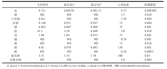 飛灰內含的可溶性重金屬在暫存或填埋過程中會溶入降水、地下水、地表水、滲瀝液中,因此,有可能污染水體環境。按照《危險廢物鑒別標準-浸出毒性》(5086.3-1996)中規定的方法,對上海御橋生活垃圾熱能電廠的飛灰進行測定,飛灰樣本中的重金屬鉛(Pb)均超過鑒別標準值(> 3 mg/L))1)。