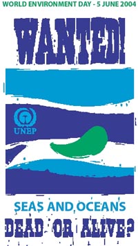 2004年的世界環境日主題為:Wanted! Seas and Oceans – Dead or Alive? (暫譯作“海洋興亡,匹夫有責!”)這一主題不僅反映出在巴塞羅那市開展的各項相關活動--作為萬國文化論壇活動的一個組成部分,該市正在大力實施若干與海洋有關的項目和活動,而且還展示了環境署在保護海洋環境和確保可持續的沿海地區生計領域內開展的各項重要活動。