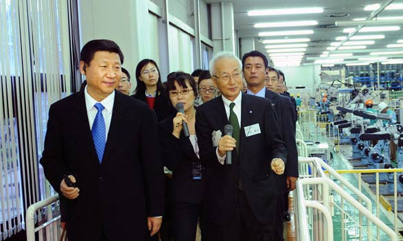 安(an)川(chuan)電機(ji)會長中(zhong)(zhong)山真、社長利(li)島康司(si)親自迎接習近平。利(li)島社長在介(jie)紹公(gong)(gong)司(si)概況時,特意告訴習副主席,公(gong)(gong)司(si)創(chuang)始人(ren)安(an)川(chuan)敬一郎早年曾(ceng)慷慨資助孫(sun)中(zhong)(zhong)山先(xian)生(sheng)的(de)(de)革命活動。1913年孫(sun)中(zhong)(zhong)山訪(fang)日(ri)(ri)時,曾(ceng)贈給安(an)川(chuan)敬一郎一幅(fu)“世界平和(he)”(意為世界和(he)平)的(de)(de)題字。利(li)島社長當(dang)天(tian)特意將這幅(fu)題字展(zhan)示給到訪(fang)的(de)(de)習近平一行(xing),并說(shuo):“我(wo)們(men)為此很(hen)驕傲,也很(hen)珍(zhen)惜從那時起(qi)就結下的(de)(de)中(zhong)(zhong)日(ri)(ri)友(you)誼,希望(wang)以習副主席今天(tian)的(de)(de)訪(fang)問為契(qi)機(ji),繼續發(fa)(fa)展(zhan)友(you)好往來。”習近平表示,安(an)川(chuan)公(gong)(gong)司(si)創(chuang)始人(ren)同(tong)孫(sun)中(zhong)(zhong)山先(xian)生(sheng)友(you)好交(jiao)往的(de)(de)故事十分感人(ren),我(wo)們(men)應當(dang)繼承并發(fa)(fa)揚(yang)光大這一中(zhong)(zhong)日(ri)(ri)友(you)好傳統。