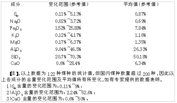 我們通過對2006年~2008年國內招標的138套電除塵器所使用的122種煤種(含9種混煤)進行分析后,總結出影響電除塵器性能的國內煤、飛灰主要成分含量分布(見表1)。