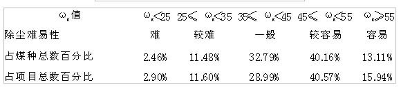 我們對2006年~2008年國內招標的138套電除塵器所使用的122種煤種(含9種混煤)的煤、飛灰樣的ωk值進行計算,得出ωk的變化范圍為20~63.11,其平均值為45.26。ωk值所對應的煤種及項目統計結果參考值如表3。