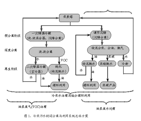 于是,課題組針對冷焦污水系統的流量及組成波動劇烈、壓力由高到低周期性變化、廢水與廢氣交織等特點,設計多級降溫冷凝—機械組合梯級污染分離 —污染物組分機械純化的一套集成裝置,將冷焦系統中VOC(揮發性有機物)氣體—水—焦粉—重油這種混合物分離為油、水、焦三部分,并分別回收利用,實現廢水治理與廢氣治理耦合、污染物治理與廢棄資源循環利用協調、經濟效益與生產清潔結合,解決冷焦廢水、廢氣污染問題。