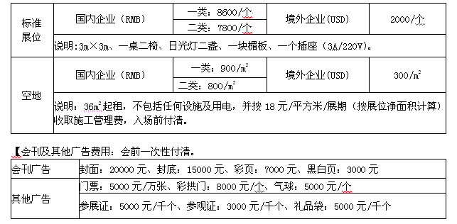 【參展費用:會前一次性付清,參展商中途取消參展,參展費不退(tui)回。