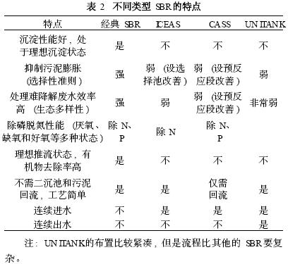由表2可見在(zai)新(xin)型(xing)SBR中(zhong)經典SBR的(de)(de)優點(dian)(dian)在(zai)一定程度上被弱(ruo)化, 同(tong)(tong)時由于改(gai)進(jin)的(de)(de)SBR 吸收(shou)了傳(chuan)統活性污(wu)泥的(de)(de)特(te)點(dian)(dian), 出現了連續進(jin)水、連續出水和帶(dai)回(hui)流污(wu)泥的(de)(de)SBR反應(ying)器以及UN ITANK新(xin)型(xing)綜合性工藝。不(bu)同(tong)(tong)類型(xing)的(de)(de)SBR反應(ying)器的(de)(de)優點(dian)(dian)是不(bu)同(tong)(tong)的(de)(de), 因此在(zai)進(jin)行工藝選擇和設計(ji)計(ji)算時應(ying)當注意(yi)。