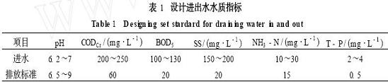 CODCr : 200~250 mg/L,BOD5 : 100~130 mg/L,NH3 - N: 4~30 mg/L, T - P : 2~4 mg/L, SS: 150~200 mg/L,根據實際情況要求選擇一種占地面積小,造價和運行費用低,運行穩定,管理簡便的廢水處理工藝,且出水水質基本達到( GB8978 -1996)一級排放標準。