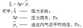 “通道”指試驗管道。當在不同的實驗室檢測同一臺消聲器時,如果各實驗室的試驗管道截面積不同,則相同的試驗管道流速將對應不同的消聲器片間流速,壓力損失就會不同,而通道內氣流平均動壓相同,導致各實驗室的阻力系數檢測數據缺少可比性。