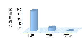 重點城市 113個環境保護重點城市空氣質量有所提高,空氣質量達到一級標準的城市占0.9%,達到二級標準的占66.4%,達到三級標準的占32.7%。與上年相 比,達標城市比例上升了9.8個百分點。