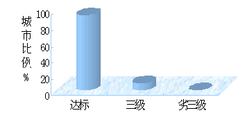 2009年,全國612個城市開展了環境空氣質量監測,其中達到一級標準的城市26個(占4.2%),達到二級標準的城市479個(占 78.3%),達到三級標準的城市99個(占16.2%),劣于三級標準的城市8個(占1.3%)。全國地級及以上城市環境空氣質量的達標比例為 79.6%,縣級城市的達標比例為85.6%。