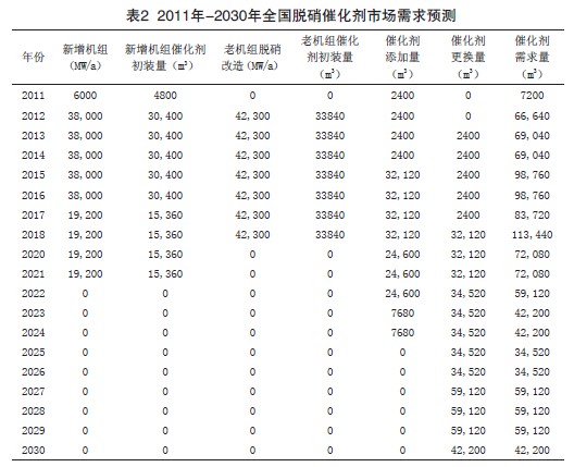 從2011年(nian)到2030年(nian)催化劑(ji)的需求量見表2。