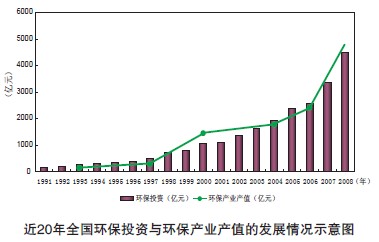 在“十一五”環境治理投資的強勁驅動下,環保產業也得到了迅猛的發展(我國近20年環保投資和環保產業的發展情況見下圖)。