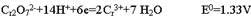 重鉻酸鉀在強酸介質中的氧化反應式為: