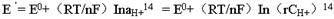 式中:E‘——條件電極電位;E0——標準電極電位;R——氣體常數;.8.314J/K?mol;T——絕對溫度;n——化學反應的當量數;F——法拉第常數,為9.65×104C/mol;r——活度系數;a——活度;C——濃度。
