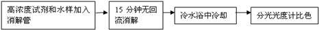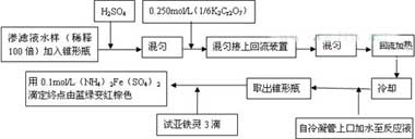水樣在硫酸溶液中,與已知過量的重鉻酸鉀在以硫酸銀作催化劑和硫酸汞作為消除氯離子干擾的掩蔽劑存在下,進行固定時間的加熱回流。在回流時間內,有部分重鉻酸鹽被所存在的可被氧化的物質所還原。以試亞鐵靈作指示劑,用硫酸亞鐵銨滴定剩余重鉻酸鹽,由消耗的重鉻酸鹽量計算COD值。操作步驟見圖1: