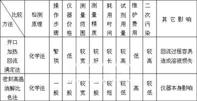 3、 在測量范圍方面開口加熱回流滴定法優于密封高溫消解比色法。