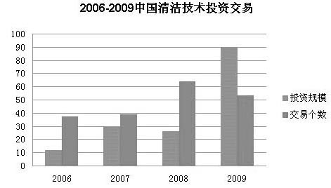 據劉東秋介紹,2006年至2009年底,已披露的中國清潔技術投資累計交易數量為193起,累計交易金額156.92億美元。同時,2009年中國清潔技術領域風險投資、并購和融資市場非常活躍,累計披露77起事件,其中披露交易金額的事件53起,累計交易金額為89.86億美元。