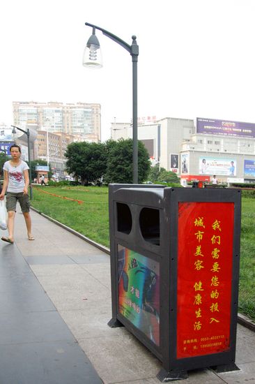 “如何引導市(shi)(shi)(shi)(shi)民在(zai)公共(gong)場(chang)所正確(que)有效使用垃(la)圾(ji)(ji)容(rong)(rong)器,成為當今城(cheng)(cheng)市(shi)(shi)(shi)(shi)市(shi)(shi)(shi)(shi)容(rong)(rong)管(guan)理的一個(ge)難(nan)題(ti)。”鏡湖區(qu)環(huan)衛(wei)所負責(ze)人(ren)介紹,城(cheng)(cheng)市(shi)(shi)(shi)(shi)公共(gong)環(huan)衛(wei)設(she)(she)施是一座(zuo)城(cheng)(cheng)市(shi)(shi)(shi)(shi)文(wen)明(ming)的重要體現(xian),“節(jie)能(neng)(neng)減(jian)排”與“低碳經濟”理念日漸深(shen)入人(ren)心,城(cheng)(cheng)市(shi)(shi)(shi)(shi)公共(gong)設(she)(she)施的環(huan)保(bao)需求也愈(yu)發(fa)強烈。目前(qian),我市(shi)(shi)(shi)(shi)設(she)(she)置的垃(la)圾(ji)(ji)容(rong)(rong)器存在(zai)一些不足:絕(jue)大多數材質不環(huan)保(bao);容(rong)(rong)器周邊照明(ming)不夠,不方便市(shi)(shi)(shi)(shi)民靠(kao)近投放垃(la)圾(ji)(ji),易(yi)造成二(er)次污染;款式不新穎,造型(xing)不合(he)理,一定程度上無法(fa)適應城(cheng)(cheng)市(shi)(shi)(shi)(shi)發(fa)展。我市(shi)(shi)(shi)(shi)爭創全國(guo)文(wen)明(ming)城(cheng)(cheng)市(shi)(shi)(shi)(shi),使用高性(xing)能(neng)(neng)公共(gong)環(huan)衛(wei)設(she)(she)施,可以提升城(cheng)(cheng)市(shi)(shi)(shi)(shi)管(guan)理水平,增強市(shi)(shi)(shi)(shi)民環(huan)保(bao)意識與社會責(ze)任感(gan),進(jin)一步服務于文(wen)明(ming)創建工作。