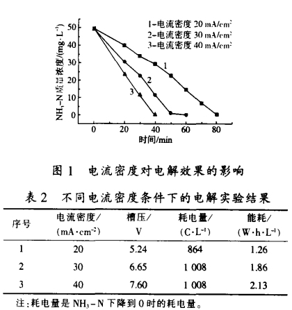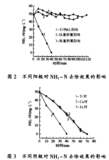 (2) 去除 NH一N的效果除了與電流密度、電解時間、NH,一N濃度、pH值有關外,還與陽極、陰極、電極面積等因素有關。