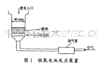 鐵屑法是利用金屬腐蝕原理, 形成原電池對廢水進行處理的工藝, 我國從20 世紀80年代就(就字為避免系統攔截所加,原文沒有)開始這一領域的研究〔2 〕, 已有不少文獻報道。特別是近年來, 進展較快, 在印染廢水、電鍍廢水、制藥廢水、石油化工廢水、含砷及含氰廢水治理方面相繼有研究報道, 有的已投入實際運行。一般的鐵屑法是將廢鑄鐵屑與惰性電極放在一起, 形成鐵- 惰性電極原電池, 通過鐵屑腐蝕發生的一系列化學反應來達到處理廢水的目的, 也叫內電解法或者腐蝕電池法, 一般由活性炭〔3〕、煙道灰〔4〕、瓦斯灰〔5〕作為惰性電極。該方法存在處理速度慢, 活性炭、煙道灰和瓦斯灰難于與水分離, 鐵屑容易板結等不足, 阻礙了其工程規模應用的進度。為了解決上述鐵屑法的不足, 筆者首次嘗試提出了鐵- 氧電池法, 即將廢鑄鐵屑放入盛有抗生素廢水的反應器中, 從反應器下端用空氣泵鼓入空氣, 其中的氧氣與鐵屑形成了Fe - O 腐蝕電池,從而加速鐵的腐蝕速度, 以求在常規條件下滿足抗生素廢水 處理的要求。