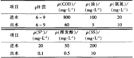 該污(wu)水處(chu)理(li)場(chang)設計規(gui)模350 m3/h。污(wu)水處(chu)理(li)場(chang)主要設計進、出水指標見表l。