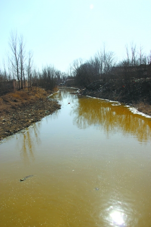 丁大爺說:“如果到了河水比較少的時候,河堤上就能看到一層黃乎乎的,像銹一樣的東西,緊緊地扣在河堤上。”