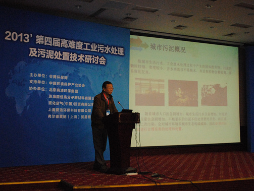 2013年第四屆高難度工業污水處理及污泥處置技術研討會上,南開大學環境科學與工程學院教授博士生導師于宏兵教授發表針對我國污泥處置存在問題及技術使用性分析的演講。