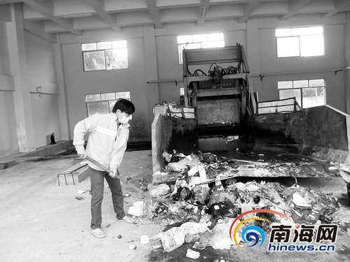 定安(an)縣龍河(he)鎮垃(la)(la)圾(ji)中轉(zhuan)站,環衛(wei)人員對收(shou)集來的(de)垃(la)(la)圾(ji)進行(xing)壓縮后(hou),再(zai)轉(zhuan)運至縣生活垃(la)(la)圾(ji)衛(wei)生填(tian)埋場填(tian)埋。