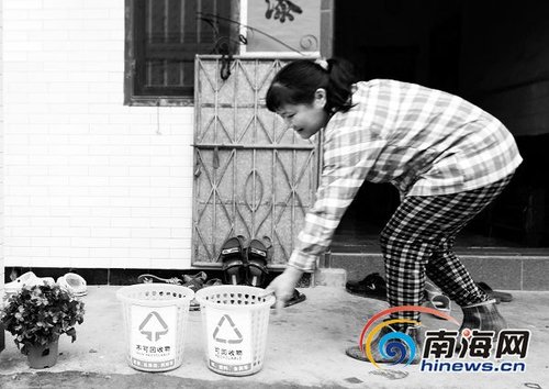 瓊海軍屯村(cun)委會村(cun)民家家戶戶都(dou)有(you)兩個垃圾筐。
